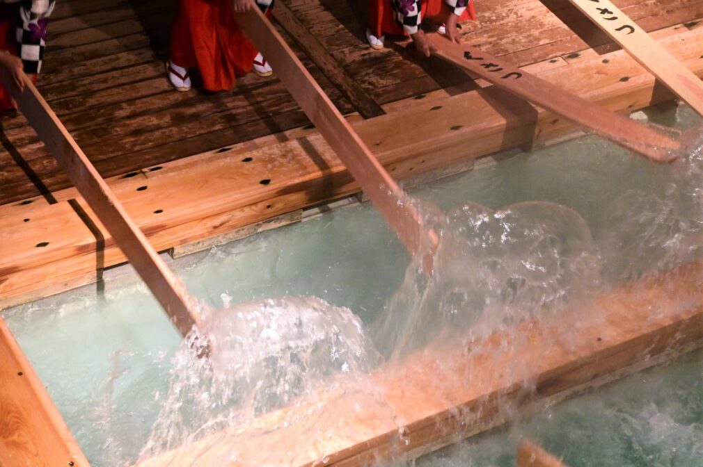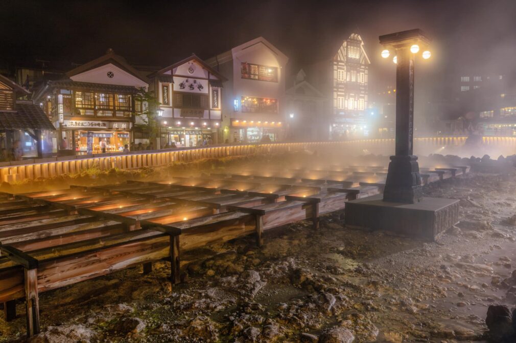Kusatsu Onsen is a small hot spring town with a population of only about 6,000, but brings 3 million tourists every year. It is said that a good hot spring is a good doctor, the water is good for easing neuralgia, muscle pain, joint pain, skin diseases, diabetes, high blood pressure, and arteriosclerosis. The natural hot spring water flows out at a rate of 4,000 liters per minute. The steam-filled Yubatake field is lit up at night. The source water is extremely hot, ranging from 50℃ to 90℃. There is also a fun experience of a hot spring Yumomi show, where the hot spring water is cooled using wooden boards with traditional songs.