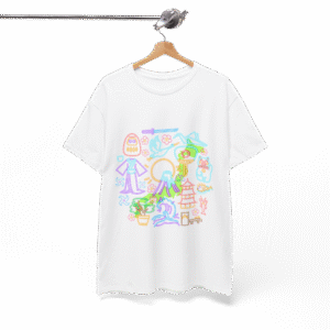 Light up your style with bold Japanese neon symbols over the map of Japan! This tee is packed with all the iconic symbols, making it a must-have for anyone who loves Japan! S M L XL 2XL Width, cm 45.72 50.80 55.88 60.96 66.04 Length, cm 71.12 73.66 76.20 78.74 81.28 Sleeve length (from…