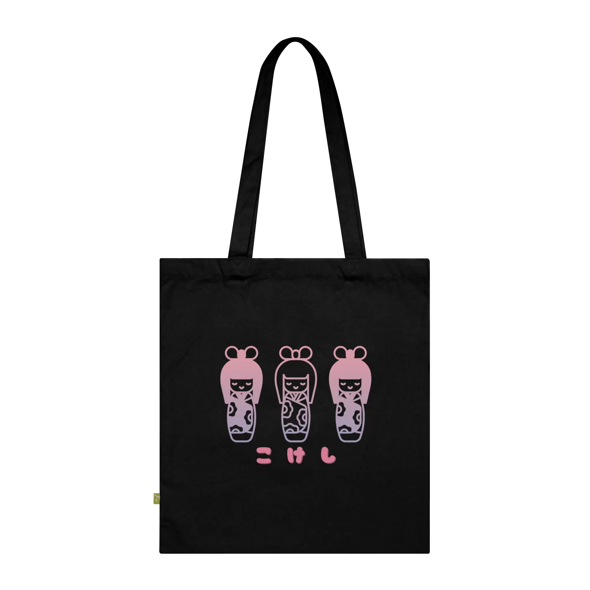 Celebrate tradition in style with this 100% organic cotton bag featuring a charming pink Kokeshi doll and “こけし” in hiragana—soft, sustainable, and uniquely Japanese.